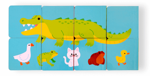 Bøgerne er perfekte til små hænder og man kan endda bruge de 8 bøger til, at lave et stort puslespil med bagsiderne.